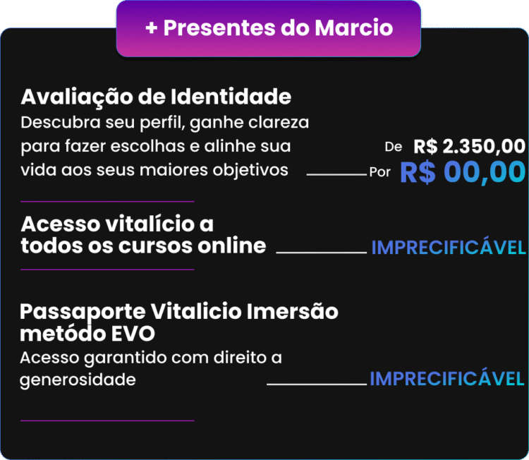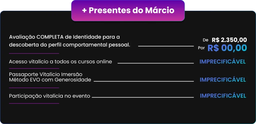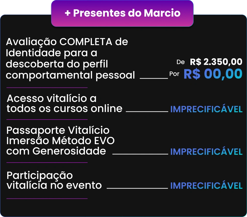 Sou Márcio Micheli, especialista em inteligência emocional e criador do Método EVO. Escrevi os livros “Passado Resolvido, Futuro Decidido” e “A Tríade do Poder”, e já tive o privilégio de acompanhar milhares de pessoas que buscavam clareza, equilíbrio e transformação real em suas vidas.